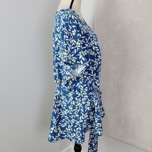 Lane Bryant Blue And White Floral Print Lena Peplum Belted Top