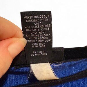 Size 18/20 Lane Bryant sweater top. Black and bright blue stripes with sparkles throughout the blue fabric. I tried to show in pictures but couldn't capture it well. It's a light sparkle and very playful and lovely when wearing. Comfortable and flattering when worn. Minimal wear, looks almost new.