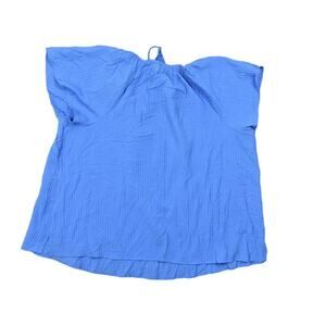 Lane Bryant Blue Blouse Plus Size 26/28 Cotton Blend Short Sleeve Keyhole