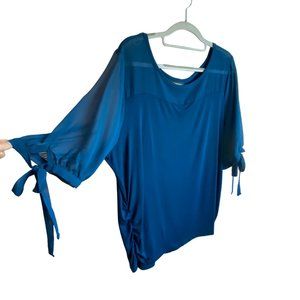 Lane Bryant Blue Chiffon sleeves Tie cuff ruched sides top sz 18/20