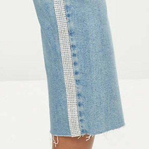 Chic blue cropped jeans. Accented with a metallic side stripe. Ideal for everyday style.