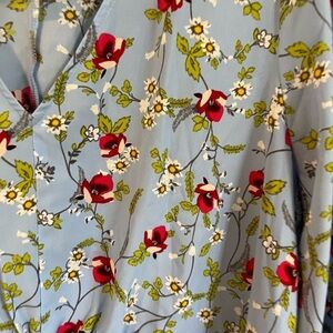 Lane Bryant Blue Floral Print Cinched Waist V Neck Wide Sleeves 18/20 NWT