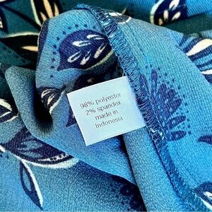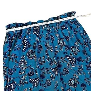 Beautiful Lane Bryant Blue Floral Skirt with Elastic Waist and tie, and side Pockets, Size 14/16. Brand new never worn but missing tag. See photos for measurements lying flat; elastic waistband stretches to about 27”.