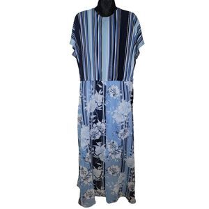 Lane Bryant Blue Floral Stripe Short Sleeve Maxi Faux Wrap Dress Size 18