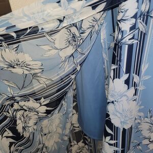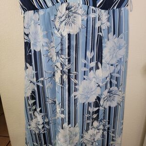 Excellent pre-owned condition. No flaws to note. Women's plus size Lane Bryant Blue Floral Stripe Short Sleeve Maxi Faux Wrap Dress Size 18.