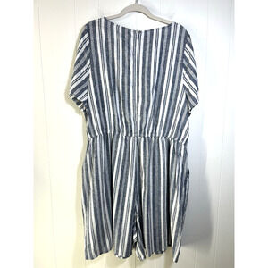 Lane Bryant Blue Nautical Striped Linen Blend Romper Pockets Lagenlook Size 22