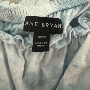 Effortlessly stylish and comfy — this Lane Bryant off-the-shoulder top features a soft blue and white ombré tie-dye fade with an elastic neckline that can be worn on or off the shoulders.