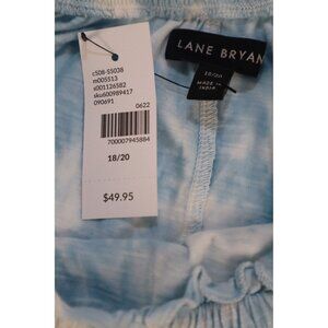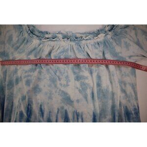 This beautifully flowing Lane Bryant top features a stunning blue tie-dye pattern reminiscent of serene skies and oceans. Designed with an off-shoulder ruffled neckline, it provides an elegant yet casual look. The lightweight fabric ensures breathability and comfort, making it ideal for warm days or layering under a favorite cardigan.