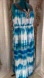 Flowy watercolor maxi dress in vivid blue and white with intricate beaded neckline and elastic waist—perfect for a resort-ready or boho chic look.