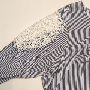 Lane Bryant Blue White Striped Lace Shoulder Long sleeve - Women's Size 22/24