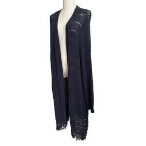 Lane Bryant Boho Cardigan Womens Plus Size 22/24 Navy Open Knit Long Fringed