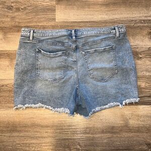 These shorts are made by Lane Bryant. They are a distressed lighter denim wash in the boyfriend midi cut. Size 20 and in great condition. Smoke and pet free home.
