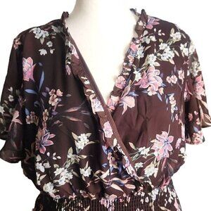 Lane Bryant Brown Floral Sleeve Flutter Bohemian Chiffon Maxi Dress Size 22/24W