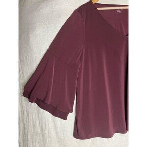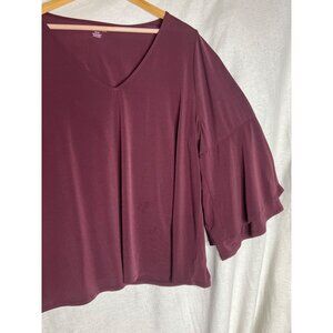 Lane Bryant Burgundy Bell 3/4 Sleeve V-Neck Blouse 18/20 Women Pullover Comfy