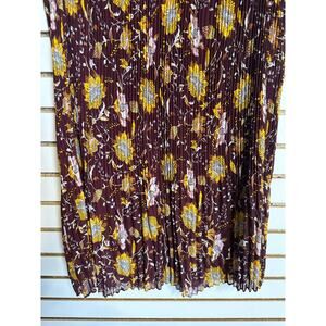 Lane Bryant Burgundy Gold Floral Dress 16 1X Pleated Flowy