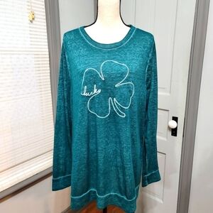 Lane Bryant Burnout 4 Leaf Clover Embroidered Green Sweatshirt Top size 18/20