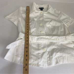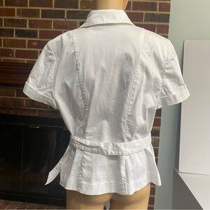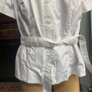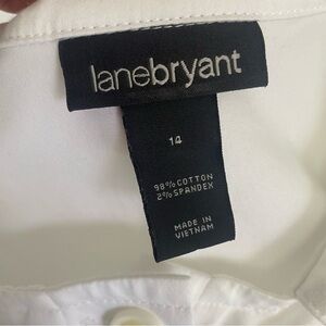 Lane Bryant Button Down Blouse white Size 14 Belted with Shoulder Pads used