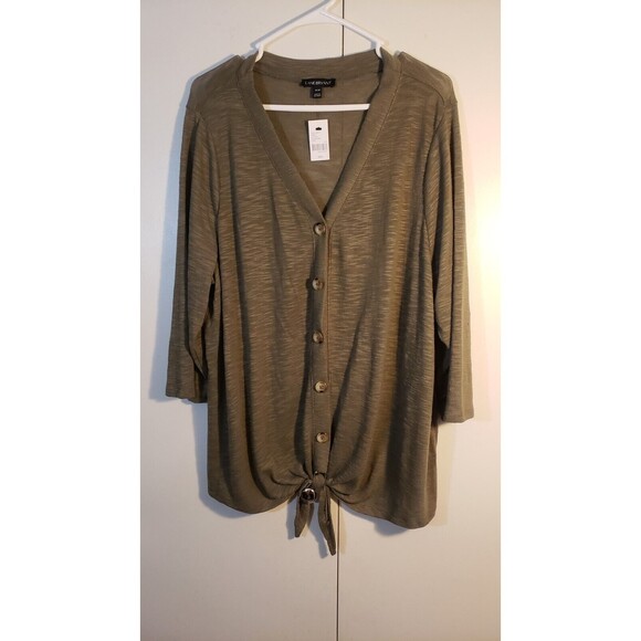 Lane Bryant Button Front Tie Hem Top 18/20 🆕Olive Green 3/4 Sleeve Lightweight