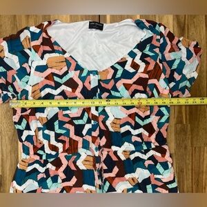 Lane Bryant Button Front Tie Waist Fully Lined Romper Geometric Print Peach Teal