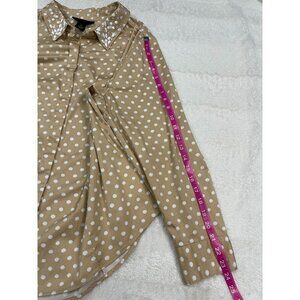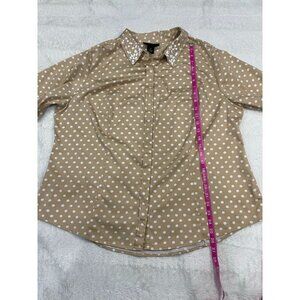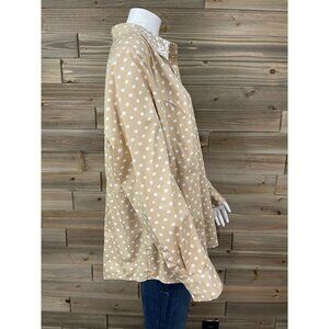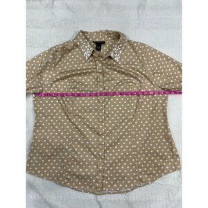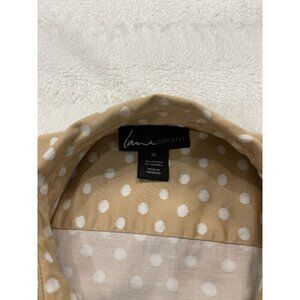 Lane Bryant Button Up Dress Shirt 22 Tan Polka Dot Long Sleeve Beaded Collar
