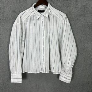 Lane Bryant Button Up Top Womens 20 White Striped Long sleeve Gauzy Career Chic Preppy Office Old Money Capsule Wardrobe