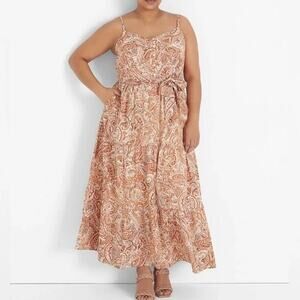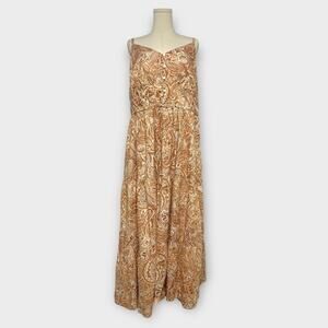 Lane Bryant Button-Down Tiered Maxi Dress Tan Paisley Plus Size 18 NEW