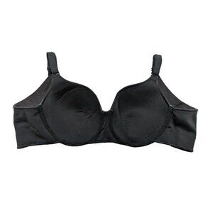 FEATURES: Backsmoother. Solid Black. Size 46DD. Hook and eye closure. Underwire. Lightly Lined. Hand wash cold. 83% Nylon 17% Elastane.