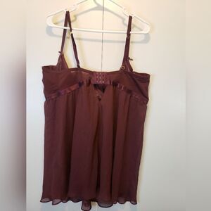 Lane Bryant Cacique Burgundy & Gold Lace Babydoll Lingerie Nightgown 42DD