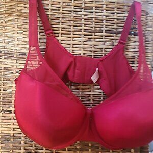 Lane Bryant Cacique Lightly Lined Full Cover Bra Red 42DD Underwire Mesh Accent