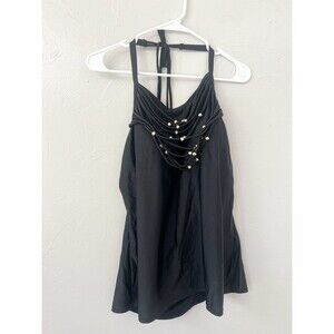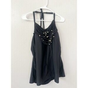 Lane Bryant Cacique Necklace Swim Tankini Built in No Wire Bra Black Plus 20W 2X