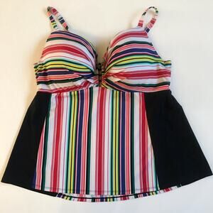 Lane Bryant Cacique Swim Tankini Top 46DD Full Bra EUC Stripe Beach Underwire