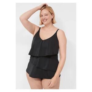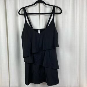 Lane Bryant Cacique Two Piece Black Ruffle Top&Short Bottom Swimsuit Sz.20W