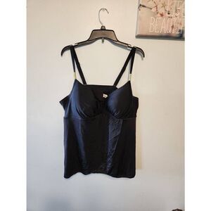 Lane Bryant Cacique Swim Twist Front Tankini Top Black Plus Size 44D