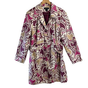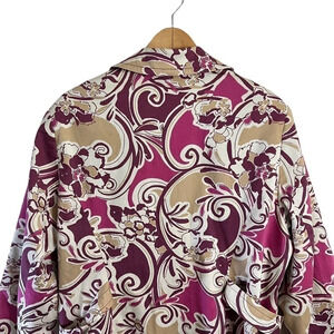 Lane Bryant Canvas Jacket Size 24 Floral Collared Button Up Purple Pink White