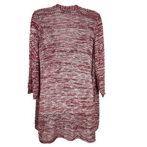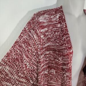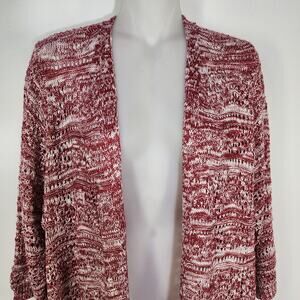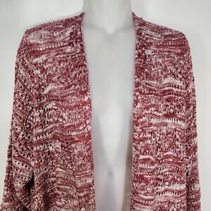 Lane Bryant Cardigan Sweater 18/20 Textured Open Knit Weave Open Front Cranberry