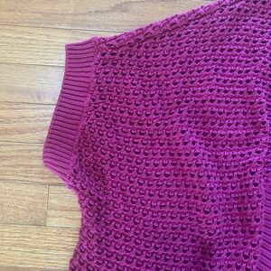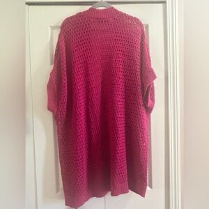 Lane Bryant Cardigan Sweater 22/24 Dark Pink Open Front Open Knit Dolman Sleeve