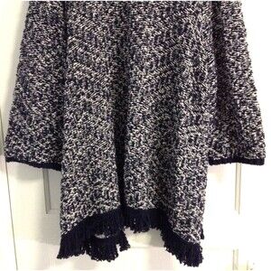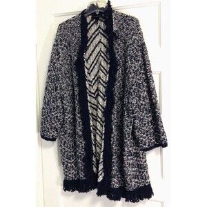 Lane Bryant Blue White Striped Boho Gypsy Lagenlook 3/4 Sleeve Open Front Cardigan Sweater with Fringe Hem
