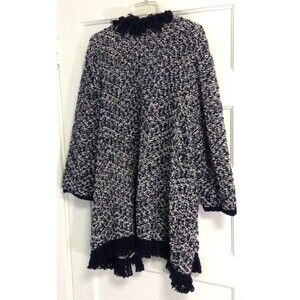 Lane Bryant Cardigan Sweater Wn 26/28 Blue White Striped Open Front Fringe Boho