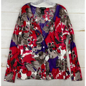 Lane Bryant Cardigan Sweater Womens 14/16 Multicolor Floral Button V-Neck Knit
