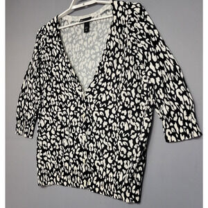 Lane Bryant Cardigan Sweater Women's 22/24 Black White Animal Print Button Up