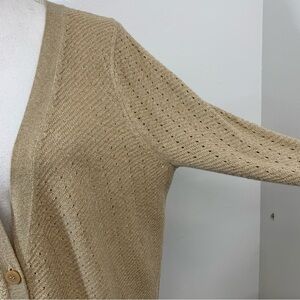Lane Bryant Cardigan Sz 14/16 Beige Gold Metallic Loose Knit Long Sleeve Office