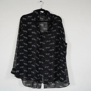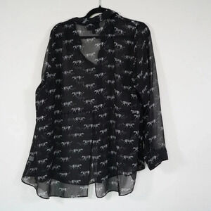 Lane Bryant Cat Cheetah Black Sheer Womens Blouse Shirt Size 18/20 Button