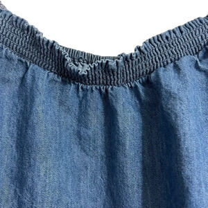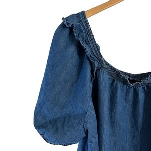 Lane Bryant Chambray Blouse Plus Size 22 Short Puff Sleeves Seersucker Neckline