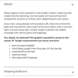 Lane Bryant Cheers Raised Graphic Sweatshirt Comfy Special Occasion 22/24