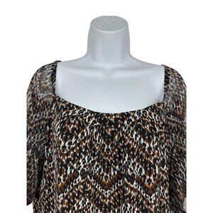 Lane Bryant Cheetah Zigzag Square Neck Elastic Sleeves Top Womens Size 22/24