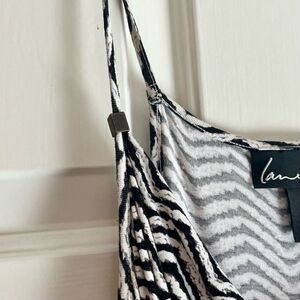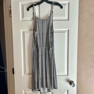 Lane Bryant Chevron Striped Sleeveless Knee Length Dress 14/16. There are some loose strings. Please see photos. Measurements in photos. In good, pre-loved condition. Comes from a smoke free home.
