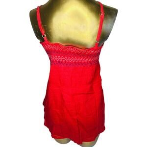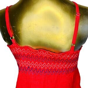 • Square neck. Adjustable cami straps. Smocked bodice. Slub cotton fabric. Slightly longer length.