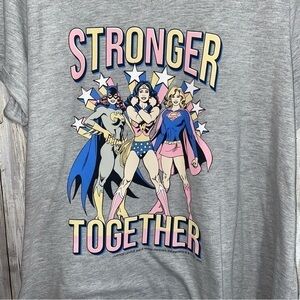 Graphic tee featuring iconic superheroes. Comfortable and stylish. Perfect for casual wear.