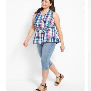 Lane Bryant Classic Surplice-Neck Belted Top 22 NEW Plaid Halter Linen Cotton