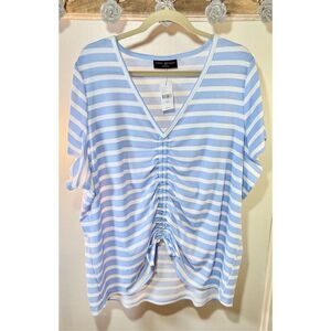 Lane Bryant Classic Flutter Sleeve Adjustable Draw Cord Ribbed Tee Blue & White